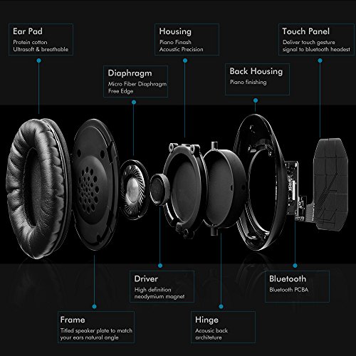 Feature : Mpow Muze Touch features a touch-controlled interface which adds a truly intuitive advanced control system to control your music in the right cup. Just Slowly swipe the control panel vertically to increase or decrease the volume; move your finger horizontally to move to the next track or go back to the previous song. / Highly tuned 40mm neodymium drivers produce provide pitch perfect audio with a thumping bass and detailed high end. / Long battery life, Up to 12 hours music play time. light weight and comfortable you can use them all day and when finished, fold them up and store them in the case provided top keep your cans pristine. / Signal Enhance Technology: Considerable innovation has gone into Signal Enhance Technology, the ability to run and play sports outdoors while using your music device anywhere on your body without the traditional limitations of your body getting between the devices and blocking signal. Even put your phone/music device in a bag at the gym and workout at a good distance without signal droppage. We? are confident you will be impressed. / With a battery life capable of 12 hours continuous wireless playback. Mpow Muze Touch won't let you down. However, if you do find yourself unable to recharge or you want to use it on a plane, you have the option of using the included 1.2m detachable cable. (Please note that in wired mode the electronic elements of the headphones such as the X-Touch swipe control will no longer operate).