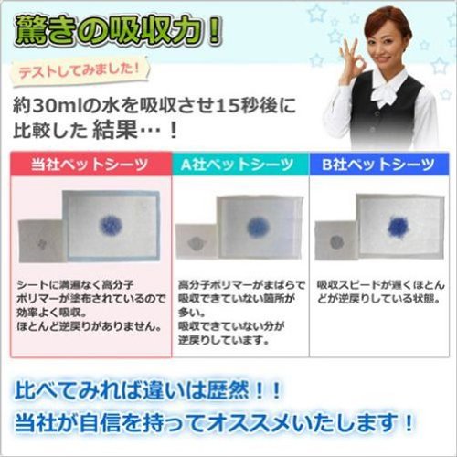 ●ワイド100枚入×4個セット(合計400枚)●一回分のおしっこをしっかり吸収(小型犬1回約30cc)●一回使い捨てタイプなので清潔。●超薄型なのでストックしてもかさばらない。●しっかりしたエンボス加工で、ひっかきにも強いシート。●満遍ない高分子ポリマーで効率よく吸収。