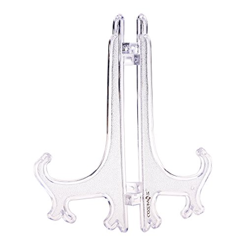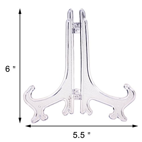 COSMOS Pack of 12 Clear Plastic Easels Plate Stands to Display Plates, Pictures or Other Items, 6 Inch Tall