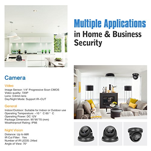 -. Title : ANNKE 4 pack TVI 720P high clarity Dome Camera, 3.6mm HD lens for Security Camera System, Up to 66ft Night Vision with Smart IR, IP66 Weatherproof Indoor and Outdoor Cameras