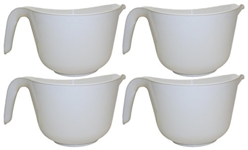Set of 4 Black Duck Brand Classic White Plastic 3 QT Mixing Bowls with Handle and Spout! (Set of 4 White)