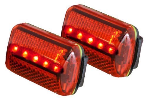Highly visible flashing safety lights contain five LED lights and allow a choice of six different flashing patterns or a steady glow (7 functions in all). Ensure safetly while jogging, biking, walking the dog, running, walking, skiing, camping, emergencies or most any night time activity. A belt clip is included so safety light can be easily attached to bike, backpack, baby stroller, wheelchair, belt or clothing, etc. The super bright LED has a visibility of up to 2,000 feet. Lightweight and water resistant.Feature