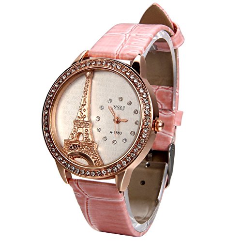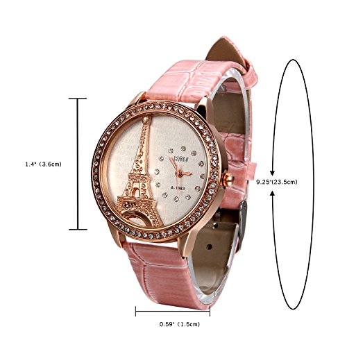 JewelryWe Mother Day Gift Bling Rhinestone Accented Eiffel Tower Leather Strap Watch Ladies Women Watches