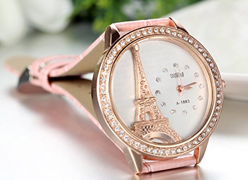 ★ Take a piece of Paris with you with this Eiffel Tower watch. It's rose gold-tone bezel is exquisitely embellished with encrusted rhinestones. The rose gold-tone Eiffel Tower with rose gold-tone hour numbers pop against the white dial.