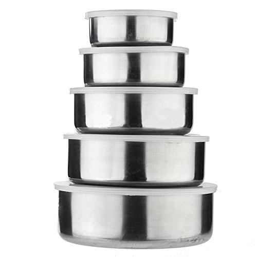 Stainless Steel Mixing Bowl Set with Lids. Set of 5 Nesting Bowls