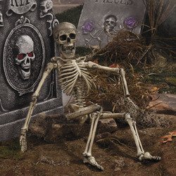 -. Binding : Kitchen -. Brand : Fun Express -. Color : Beige -. EAN : 0780984464608 -. Feature : Completely pose-able in any position. / Very detailed sculpted Plastic / 3-Feet Tall. / This plastic posable skeleton will be the life of the party anywhere he appears. / Scare up some fun and sit him in a chair, give him a costume or use this skeleton to add screams to a haunted house. -. IsAutographed : 0 -. Label : Terrys Village -. Manufacturer : Terrys Village -. Model : 25/1764 -. MPN : 251764 -. PartNumber : 251764 -. ProductGroup : Home -. ProductTypeName : HOME -. Publisher : Terrys Village -. Size : 3-Feet Tall -. Studio : Terrys Village -. Title : Halloween Posable Skeleton Outdoor Garden Decor -. UPC : 780984464608