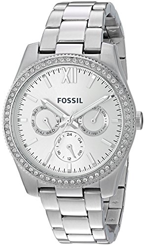 Pave stones trim the bezel of this chronograph style bracelet watch from Fossil, making it a sparkling choice for any occasion.