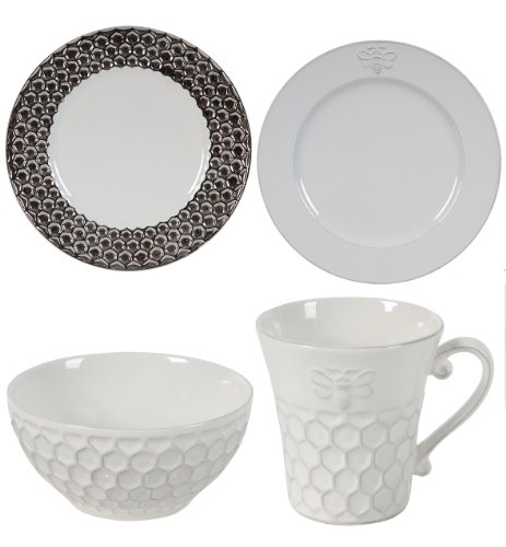 A&B Home 68069 4-Piece Bowl, Plate and Honey Comb Mug Set