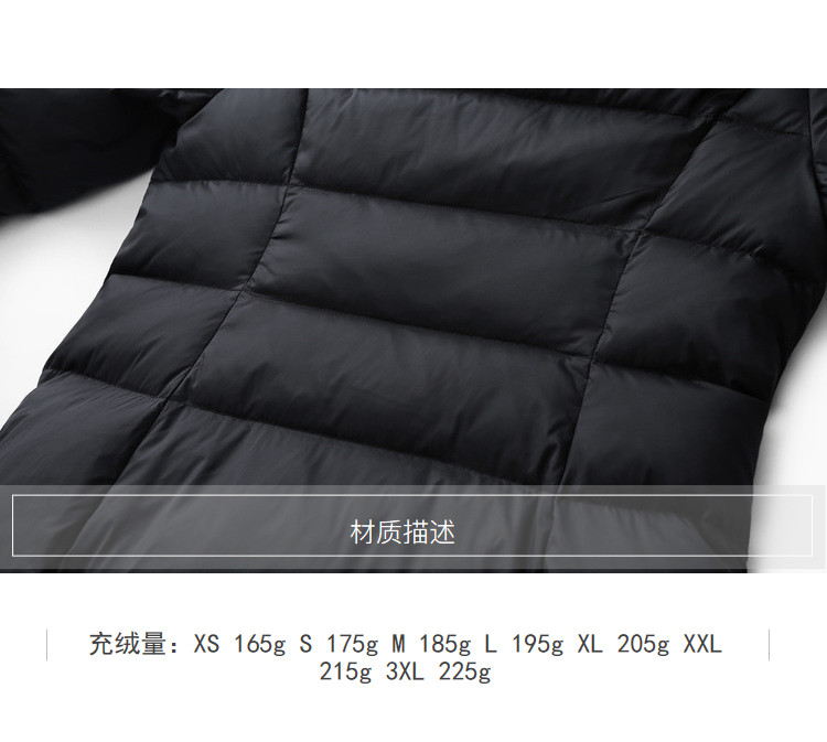 | 面料成分: | 面料:100%锦纶 里料:100%聚酯纤维 胆料:100%聚酯纤维 帽子填充物:100%聚酯纤维 |