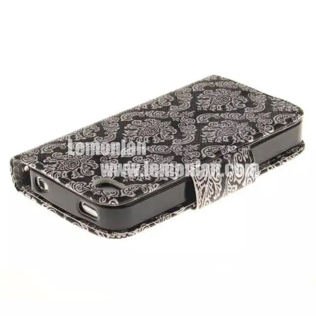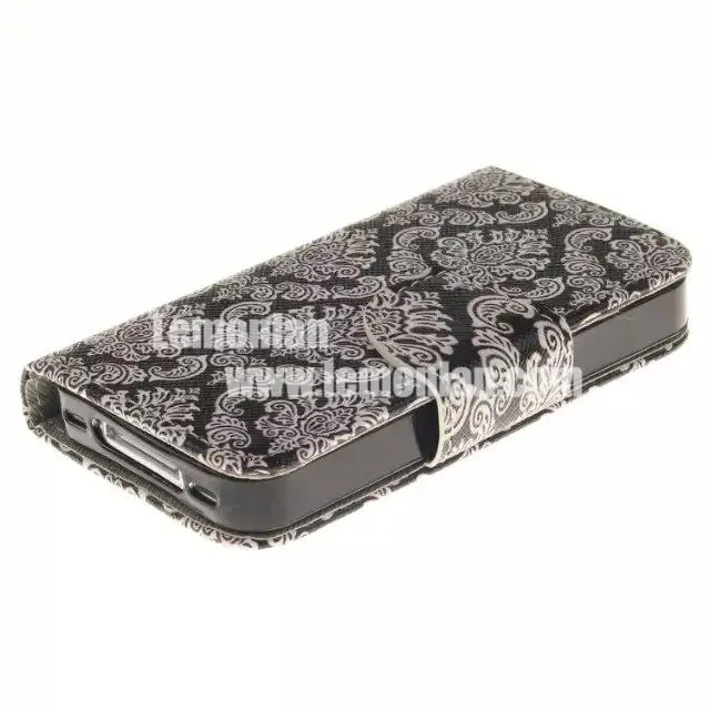 クラスプ磁気ナイフpuレザースタンドケースappleのiphoneのための4s/4