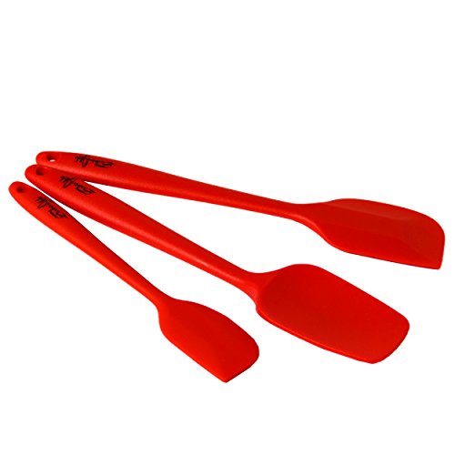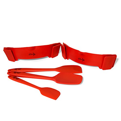 Sabinable Red Silicone Clip On Strainer With 3 Baking Matching Spatulas - 5 Piece Set