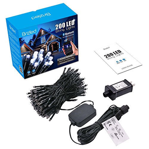 Brizled Dimmable LED Christmas Lights, 200 LED 65ft Mini String Lights, Bluetooth LED Lights Controlled by iOS & Android Devices, Ideal for Holidays, Parties and Wedding Decorations, Cool White
