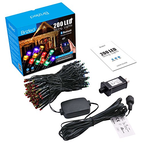 Brizled Dimmable LED Christmas Lights, 200 LED 65ft Mini String Lights, Bluetooth LED Lights Controlled by iOS & Android Devices, Ideal for Holidays, Parties and Wedding Decorations, Multi Color
