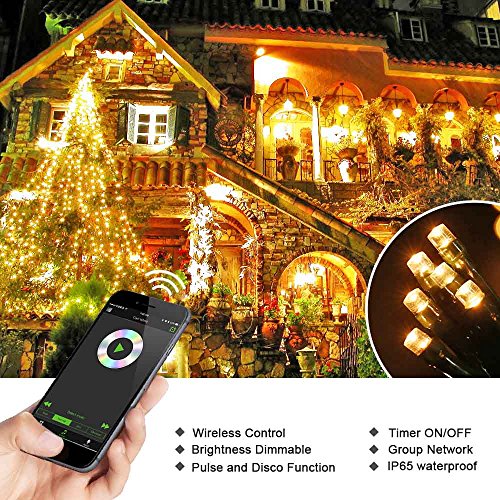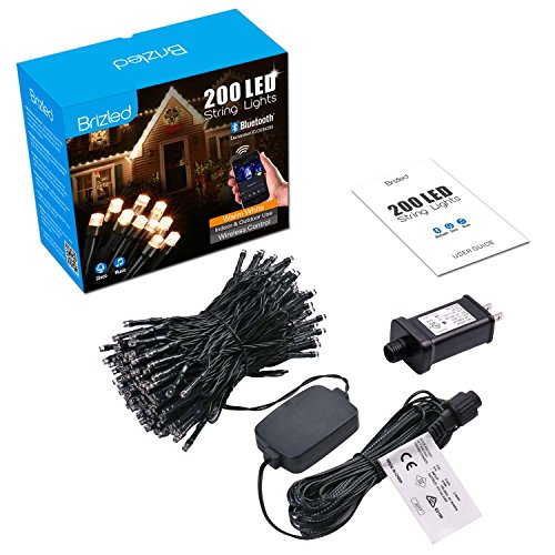 Brizled Dimmable LED Christmas Lights, 200 LED 65ft Mini Smart String Lights, Bluetooth LED Lights Controlled by iOS & Android Devices, Ideal for Holidays, Parties and Wedding Decorations, Warm White