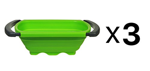 Progressive CC-130 Over-The-Sink Colander, Expandable, Green/Gray Plastic, 6-Qt. - Quantity 3