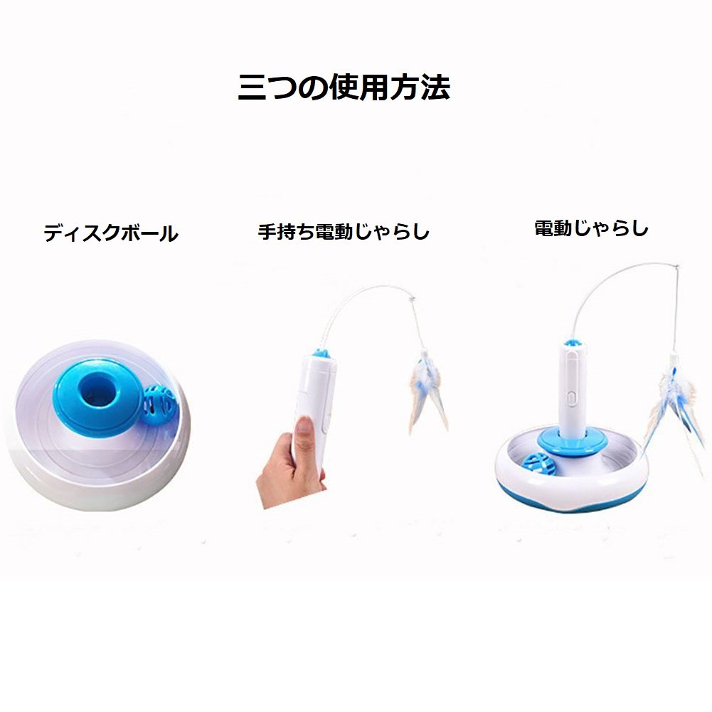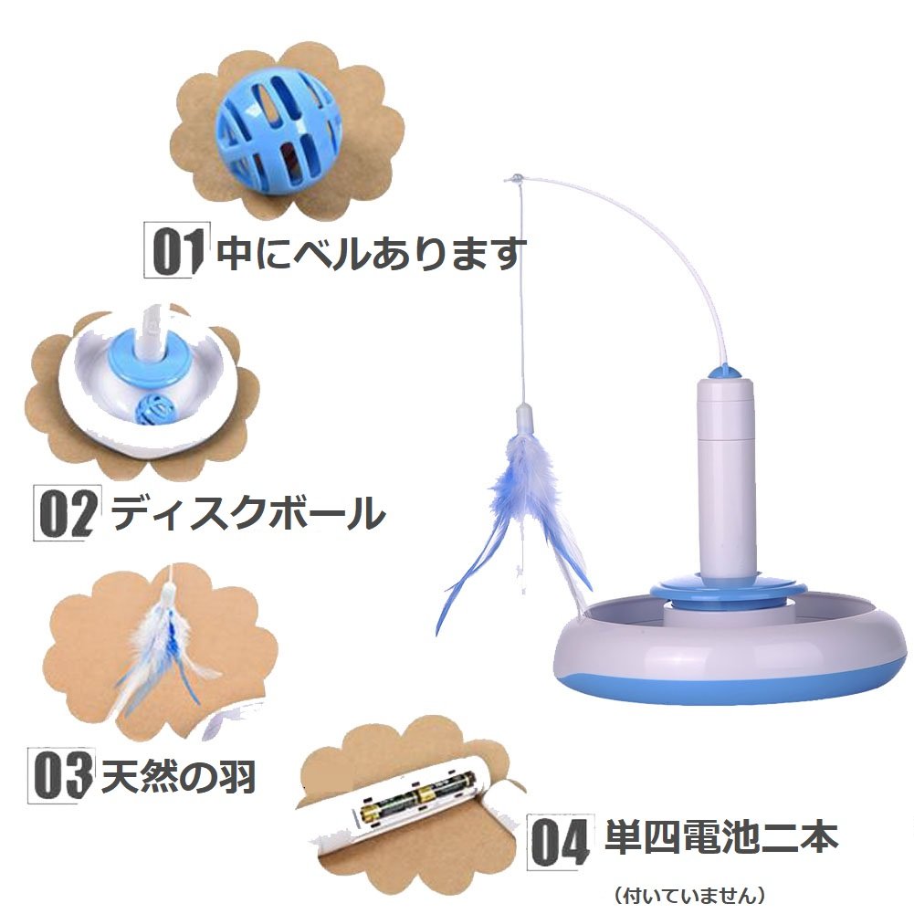 【安全素材】安全なABS素材で作られており、誤食部品がないので、危険性低いです。【一猫遊び】忙しい飼い主に似あいます。これさえあれば、猫が自分で楽しく遊ぶことが可能です。外に出かけてもご安心できます。【多機能】電動猫じゃらし、猫ディスク、手持ち電動おもちゃ 三つの機能があります。【健康運動】猫の好奇心を引き付けることで、よく運動させて健康に良いおもちゃです。【掃除簡単】部品を外すことができますので、お掃除が楽になります。