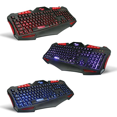 US layout gaming keyboard and Mouse sets combo: Three color LED backlit gaming keyboard and seven color backlit gaming mouse