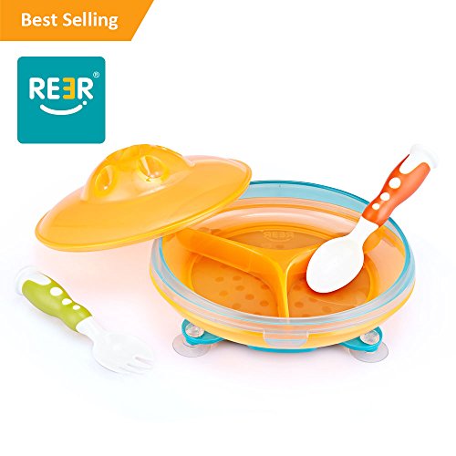 ReeR Section Plate Divided Dish With Lid and Bonus Spoon and Fork (Green and Blue)