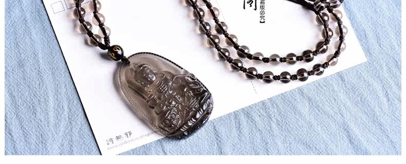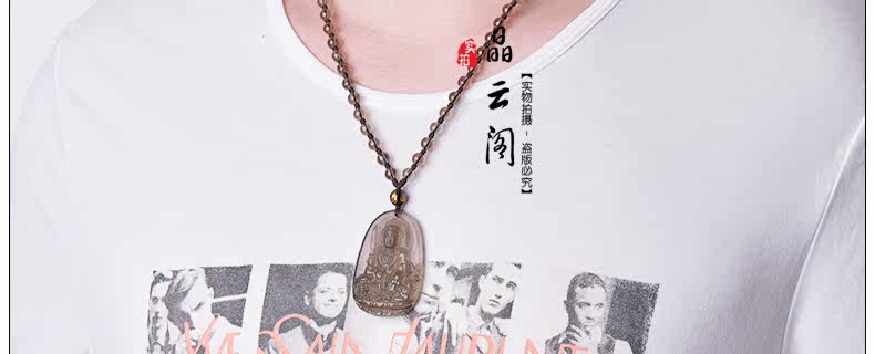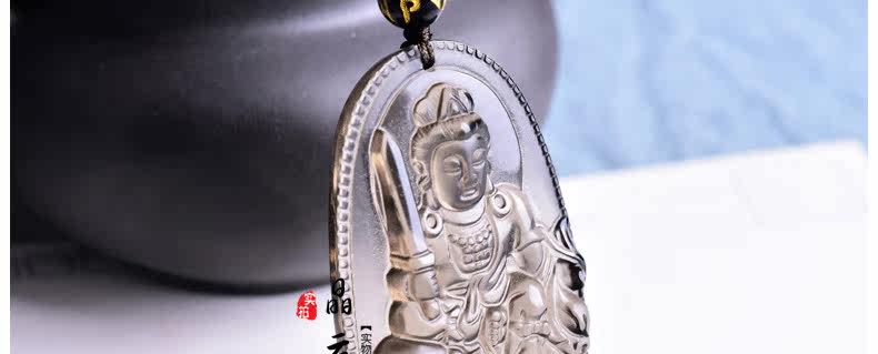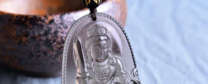 开光天然冰种黑曜石吊坠男士项链女文殊菩萨生肖属兔本命佛守护神