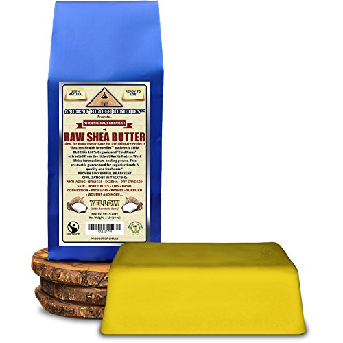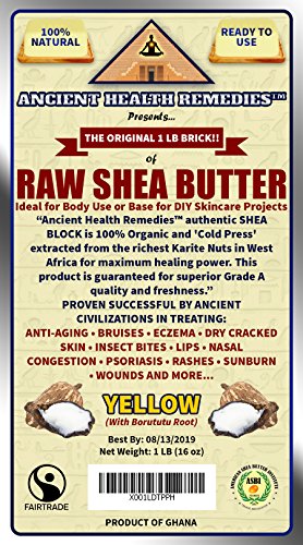 -. Feature : *BUYING ANCIENT HEALTH REMEDIESTM AUTHENTIC SHEA BUTTER is the safest and most affordable 'All Natural' alternative to chemically refined skincare products and doctor prescribed skin ointments used in treating Damaged Skin as a result of Chemotherapy, Dry Red Skin, Eczema, Frostbite, Psoriasis, Rashes, Sunburn, Wounds, Wrinkles and more. / *100% VIRGIN, ORGANIC, UNREFINED, GRADE A, VEGAN, CREAMY AND READY TO USE for topical body use or ingredient base for homemade 'Do It Yourself' body butter recipes. Ideal for Baby Care Products, Lotion Making, Organic Skin Creams, Massage Lotions and Soap Making. / *CENTURIES OLD TRADITION IN SKIN THERAPY AND BEAUTY CARE...Ancient civilizations in Africa and the Middle East have originated Organic Shea Butter as a natural healing fixture and skin sanctuary since biblical times. An ancient beauty secret in facial toning and universal body care. / *DIRECT FROM ANCIENT HEALTH REMEDIESTM , ORIGINAL MANUFACTURER OF THE POPULAR 1 LB BODY BUTTER BLOCK AND KRAFT BAGS ON AMAZON. Easy to measure and sealed twice in a high quality Kraft Foil bag to preserve maximum healing benefits. We continue to revolutionize contributions to the organic skincare industry with years of research and consumer friendly packaging solutions. / *ETHICALLY SOURCED PROVIDING FINANCIAL EMPOWERMENT FOR FAMILIES IN GHANA, WEST AFRICA- Our authentic Shea fair trade from P.R.Ivate villages and women's groups providing economical sustainability for women in West Africa.