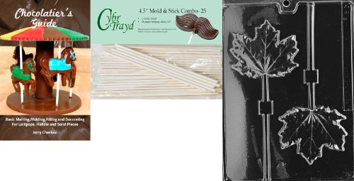 Cybrtrayd 'Large Maple Leaf Lolly' Fruits and Vegetables Chocolate Candy Mold with 25 4.5-Inch Lollipop Sticks and Chocolatier's Guide