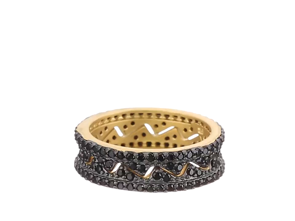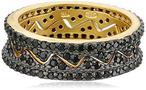 Freida Rothman Gold-Plated Silver with Black Cubic Zirconia Crown Nest Ring