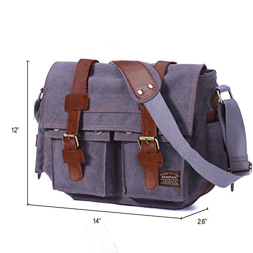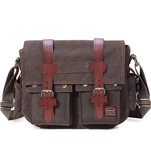 -. Binding : Misc. -. Brand : SENPAIC -. Feature : Size:10.6"*13.77"*11"3.93".Suitable for 14 inch laptop / Material:high density pure cotton canvas,breathable and sturdy / Compartment:one main pocket,one secret pocket with zipper,two side pockets and two phone pockets / Adjustable design(29.5"-41.3"),can adjust the length according to your need.Widened strap(about 2.7 inch) can help to relieve the stress of shoulder / Vintage design,causal and fashionable.Please allow little color error due to different camera or light environment -. IsAutographed : 0 -. IsMemorabilia : 0 -. Label : SENPAIC -. Manufacturer : SENPAIC -. MPN : 00139 -. PartNumber : 00139 -. ProductGroup : Sports -. ProductTypeName : SPORTING_GOODS -. Publisher : SENPAIC -. Studio : SENPAIC -. Title : SENPAIC Canvas Vintage Messenger Bag 14'' Laptop Computer Bag Leather Satchel Bag Shoulder Bookbag for Men