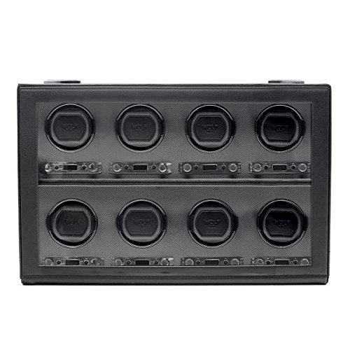 -. Title : Men's Watch Winder for 8 Timepieces in Faux Leather w/ Glass Door, Lock and Patented Winding Programs