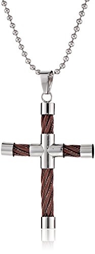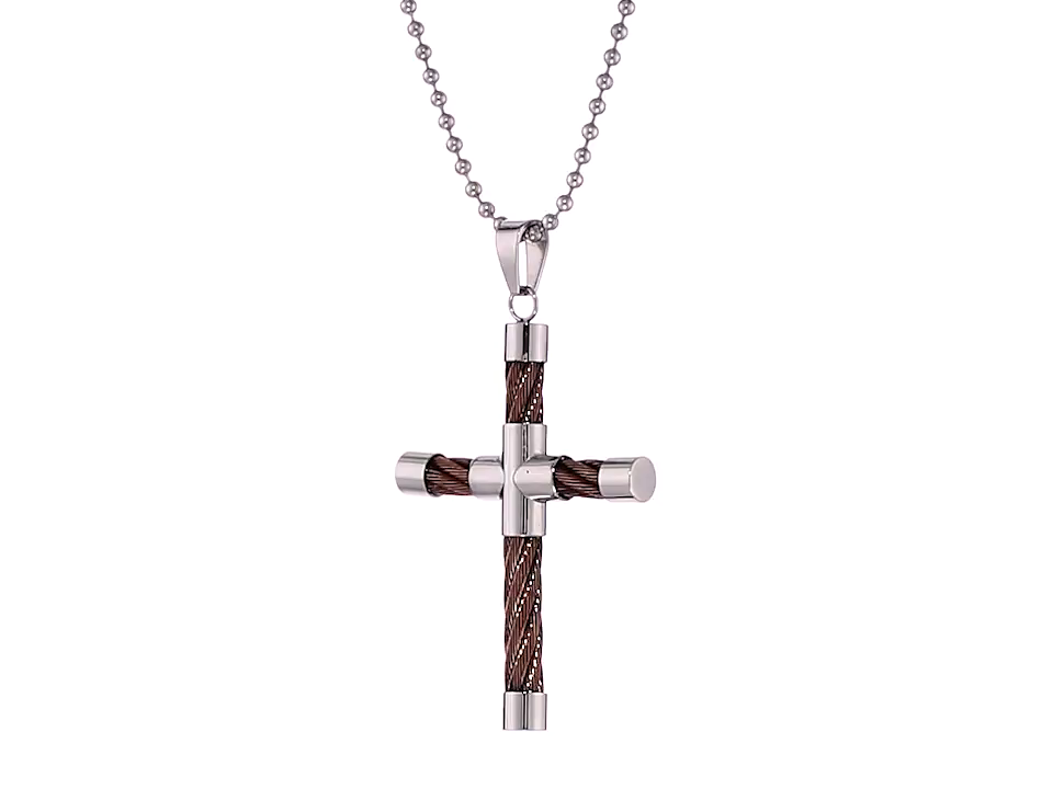 Cold Steel Stainless Steel and Brown Immersion Plate Cable Men's Cross Pendant Necklace