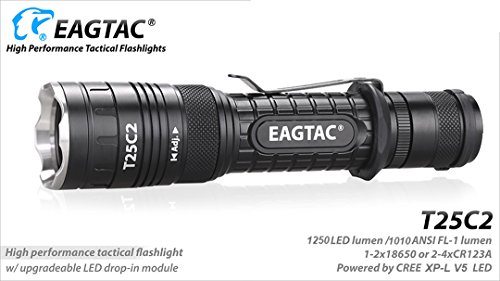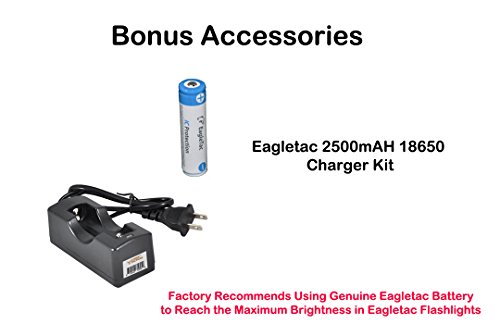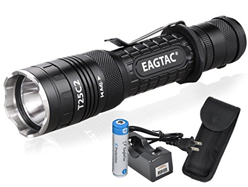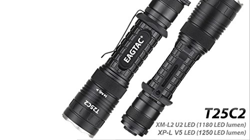 Bundle: EagleTac T25C2 XP-L V5 1250 Lumens 300 Yards Rechargeable Compact LED Tactical Flashlight with Eagletac Rechargeable 18650 Battery and LumenTac Charger - G25C2 T20C2 Upgrade