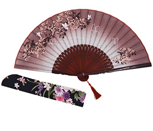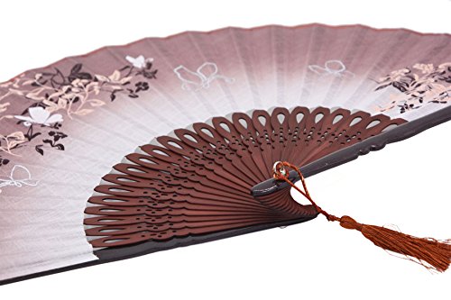 Amajiji 8.27" (21CM) Charming Elegant Modern Woman Handmade Bamboo Silk Folding Pocket Purse Hand Fan NQE (Brown)
