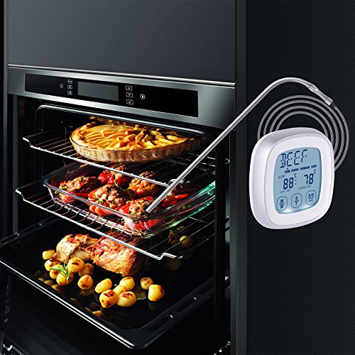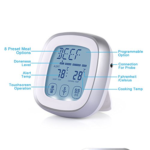 - TOUCHSCREEN CONTROL- The digital meat thermometer with touch sensitive controls is easy to read and operate on the back-light display under any lighting condition, clean with ease as well.