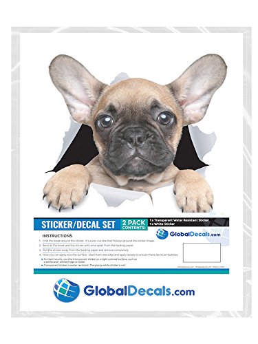 2 Pack - Global Decals 3D Dog Stickers - Cute French Bulldog Sticker for Wall, Fridge, Toilet and More - Retail Packaged