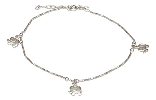 -. Title : Sterling Silver 9 inch to 10 inch Adjustable Anklet with Elephant Dangles
