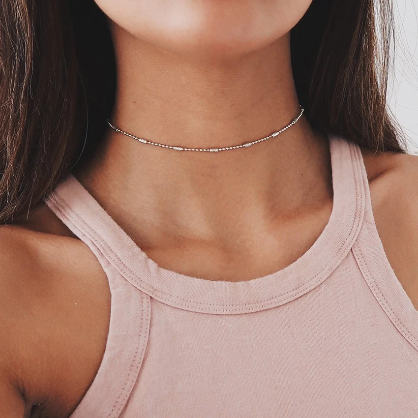 Name:boho Gold Silver Chain Beads Choker Necklace