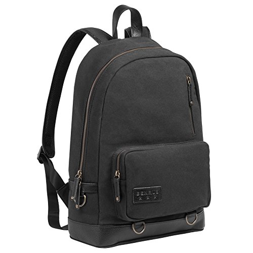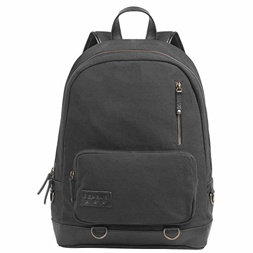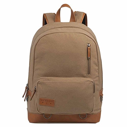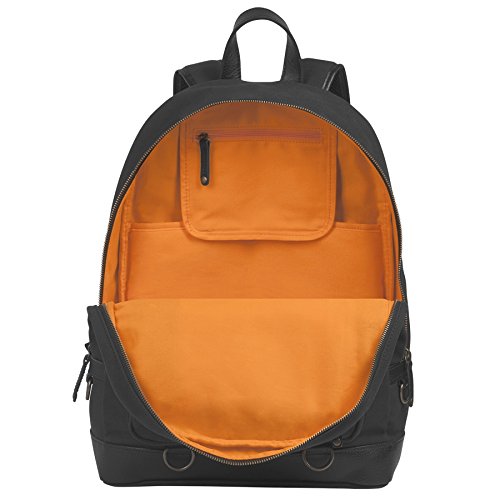 This military-inspired waxed canvas backpack with genuine top grade leather trim is the perfect size for mission essentials. Interior details include a bright safety orange lining, a padded laptop sleeve and storage pocket. Padded ergonomic straps are contoured for extra comfort and a large exterior pocket is easily accessible to provide extra storage. Antique brass finish hardware gives this modern backpack a true vintage feel. Available in Brown and Chestnut, Black and Olive, Khaki and Cognac, and Black.Feature
