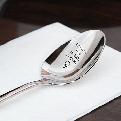 High Quality Engraved spoon Engraved by me, that says "Papa's Ice Cream Shovel" with a little "Ice cream cone" at the bottom.