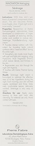 This anti-aging night cream is specifically formulated to visibly plump and tone mature skin while boosting density, vitality and comfort. Highly effective hyaluronic acid fragments fight against skin slackening. Glycoleol provides intense nutrition to protect the skin and prevent dryness. Shea butter and avocado oil nourish the skin. Paraben-free hypoallergenic and non-comedogenic.Feature