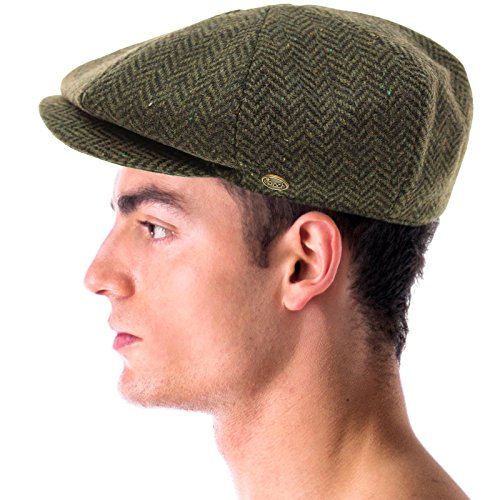 A must of Everyday 100% Wool body 8 panel visor bill newsboy paperboy poorboy gatsby cabby cabbie driving cap hat Everyone needs a cap like this for all occasions, bull 8 panel body with fitted clean back with interior sweatband. Soft curved brim. Perfect for a bad hair day. Great for all seasons, Perfect for warm or cool weather to keep harmful sun and UV rays out of your face. Ideal for everyday wear, or just for fun! Will compliment any outfit. Mix and match with your existing wardrobe. Great for vacations and outdoor activities. Flat caps were very common for North American and European men and boys of all classes during the early 20th century and were almost universal during the 1910s-20s, particularly among the working 'lower' classes. Caps worn not only by newsboys, but by dockworkers, high steel workers, shipwrights, costermongers, farmers, beggars, (such as Oliver Twist), bandits, artisans, and tradesmen of many types. 0 |