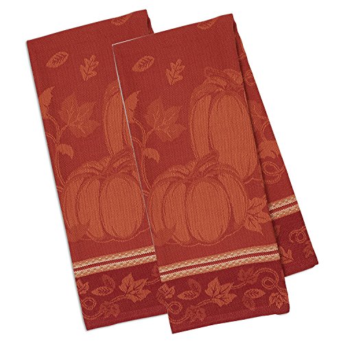 DII Cotton Thanksgiving Fall Holiday Decorative Jacquard Dish Towels, 18x28", Set of 2-Pumpkin Vine