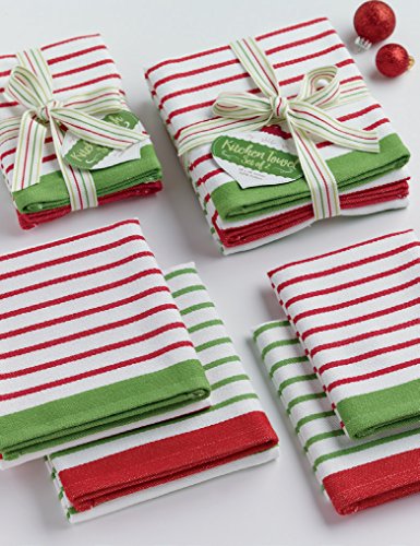 DII Cotton Christmas Holiday Decorative Striped Dish Cloths 13x13", Set of 6-Xmas Candy