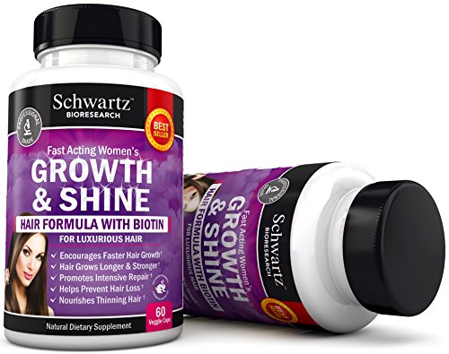 -. Feature : Fuller, Thicker, Longer Hair is Finally Possible: Schwartz Bioresearch has developed the best supplement exclusively formulated for women to promote luxurious hair and fast hair growth from within (vitamins for hair growth & hair regrowth). Premium active ingredients including biotin (biotin 5000 mcg) offer a complete hair solution targeted for women needs while preventing hair breakage for thick, lush locks. (better than a hair growth shampoo) / Back by Amazon Money Back Guarantee: At Schwartz Bioresearch we stand behind our products. If you are not fully satisfied with our Hair Growth Product (it can work well as hair skin and nails vitamins) you will receive a full refund no questions asked! / Incredible Shiny, Silky Hair: Say goodbye to dull, dry, lifeless hair. This exclusive hair growth vitamins with biotin for hair growth make hair soft and smooth, locking in nourishment and making hair healthier and damage-free and reduce shedding, increase volume & thicken hair. Will also improve hair skin nails. / 100% Safe and Natural Proven Ingredients: Schwartz Bioresearch is a leading brand in 100% natural, professional grade dietary supplements. Proudly manufactured in the USA, with strict adherence to Good Manufacturing Practices (GMP). All batches are 3rd party tested to guarantee the purity and quality of the ingredients with Non-GMOs, no fillers, no binders and no artificial ingredients. Dermatologist approved. / Initial Results in Just 4 Weeks: This supplement may address vitamins deficiencies that could be the cause of thinning Hair, Hair Loss, bald patches, lack of hair regrowth, dry hair, oily hair, brittle and weak hair. Customer have reported Lustrous and healthy hair, silky hair, longer and stronger hair while Hair regains density and shine for a beautifully healthy feel. For best results this product should be taken for 3 months.