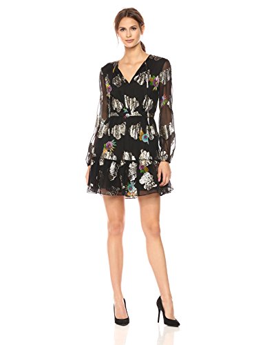 Cynthia Rowley Women's Metallic Long Sleeve Flounce Dress, Print, 2