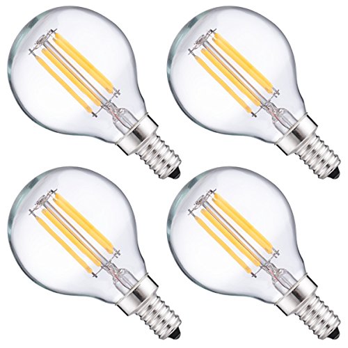 DORESshop LED Filament Bulb, G16.5 LED Globe Lights Candelabra Base, 4W (40W Equivalent) Dimmable LED Light Bulbs, Natural White 4000K, 400LM, E12 Base Decorative Bulb for Home Lighting, 4-Pack