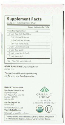 Organic India Organic Tulsi Herbal Tea, Sweet Rose, 18 Tea Bags (Pack of 6)