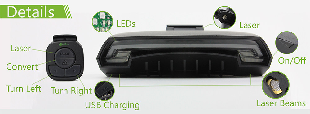 Safety Guardian: Wireless remote control and bright LED tail light are combined perfectly together to get drivers attention from blocks away, due to it's turn signal and various flashing modes. To allow drivers keep a safe distance from getting too close, lazer mode is a big help, it protect you by providing a safety range with others.