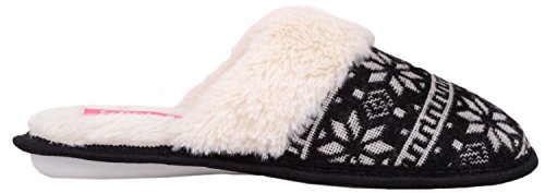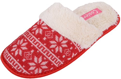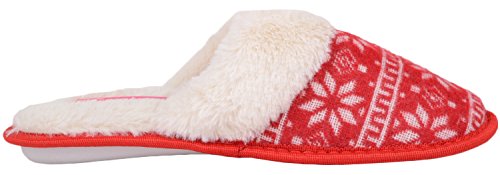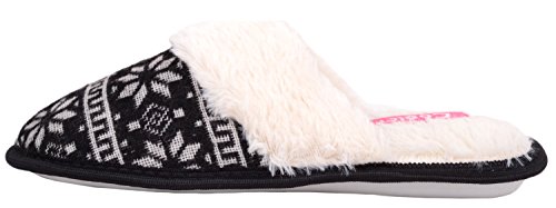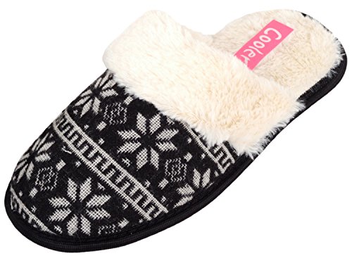 Binding : Apparel Product Description Ladies / Womens Slip On Slippers / Mules / Indoor Shoes with Snowflake Design. Sizes US 5 - 10. Soft Knitted Uppers with Patterened Design. Faux Fur Collar. Thick Fleece Fur Inners for Warmth and Comfort. Soft Padded Inside for Extra Comfort. Indoor Rubber Sole for Grip. Easy Slip On Design. 0