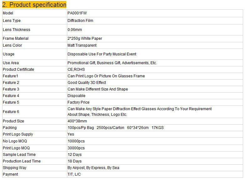 We are the first manufacture to produce the plastic diffraction glasses, and the only one can produce diffraction 13500 lines effect in China.