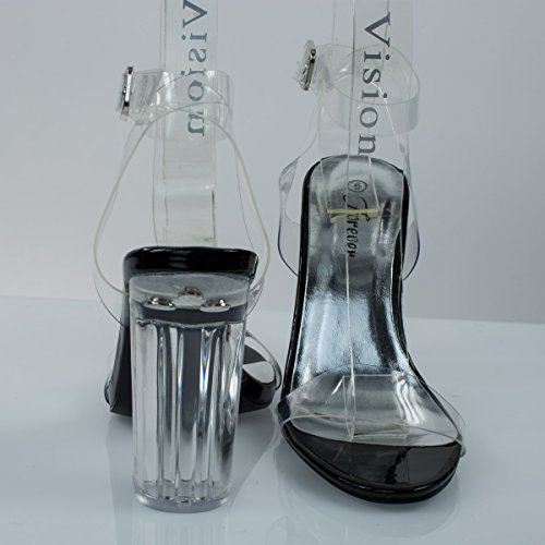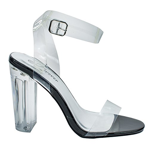 Womens Lucite Clear Cinderella Block Heel Transparent Sandal Slides-Sandals