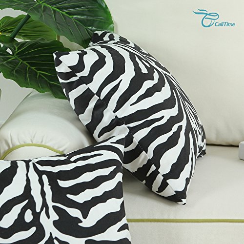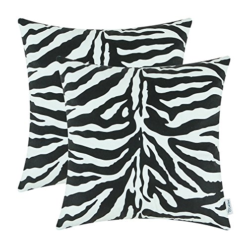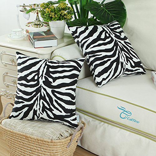 Pack 2 CaliTime Throw Pillow Covers 18 X 18 Inches Both Sides, Zebra Striped Print, Black